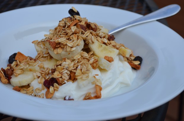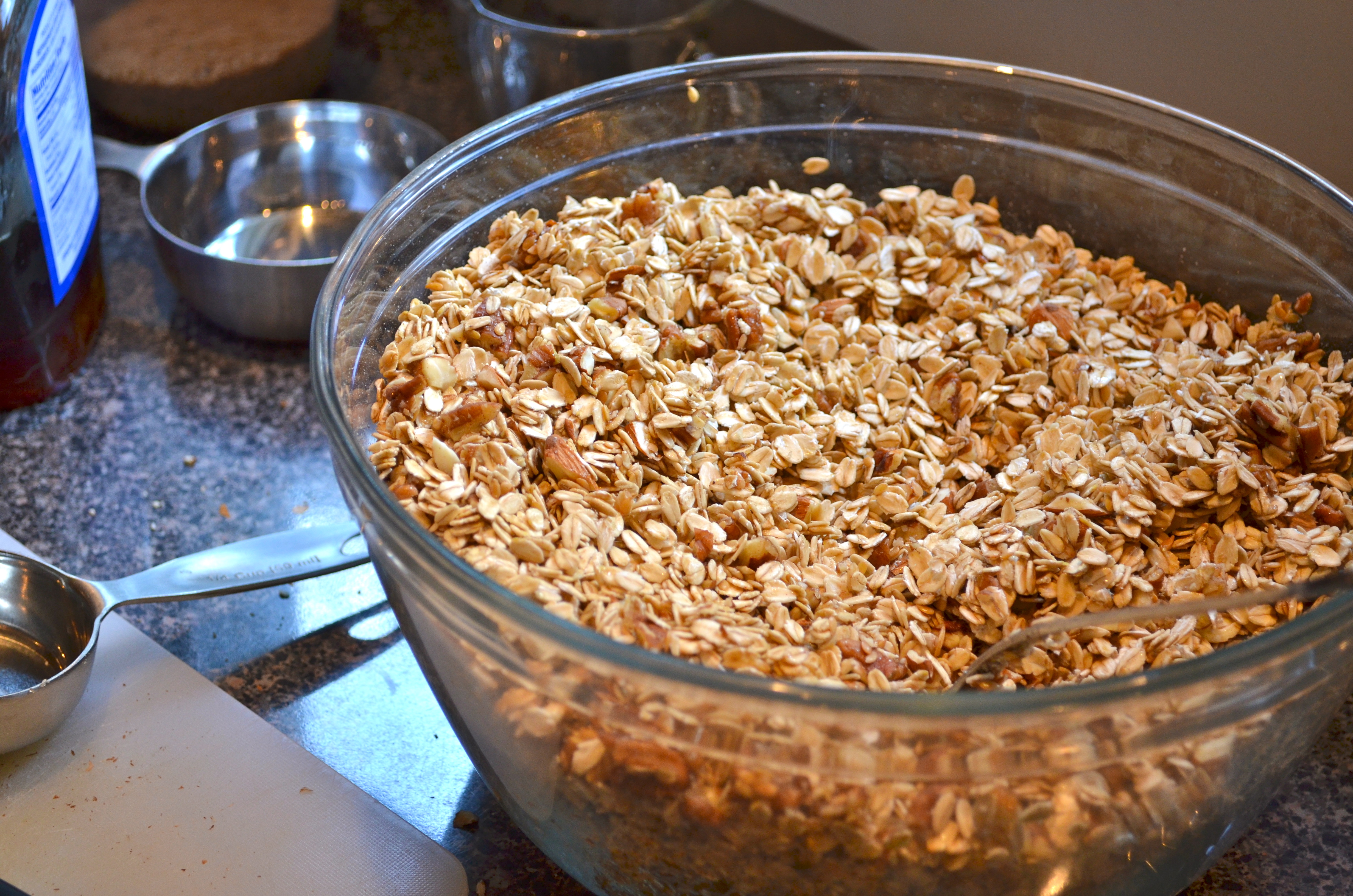 I’ve eaten the same breakfast almost every day for the past 10 years – yogurt and granola. It’s my go-to, especially when my bacon vending machine is running low. I got to a point where I figured I was depleting our retirement savings on Kashi products and so I decided that I should make my own granola. For the most part, I’d say it’s probably cheaper although there’s a real premium on nuts these days (note to self: consider becoming pecan farmer not only for access to delicious nut-meat but also for career advancement).