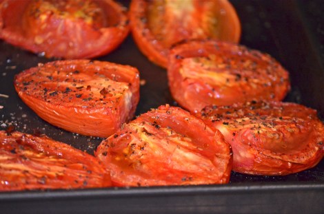 That cute little yellowish tomato in there is a Mr. Stripey (that’s really the name of the tomato variety which I find adorable) from our garden. It’s the only one we were able to salvage all summer since the squirrels decided to eat all of our tomatoes. I dislike squirrels passionately.