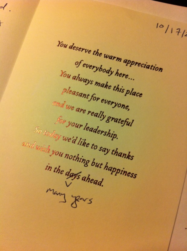 Which brings me to a tangent I need to share. This week, my husband and I celebrated our two year anniversary and in true hilarious style, rather than your typical anniversary card, he got me a “boss’s day” card from my staff (him and the pug) that thanked me for my hard work and leadership. I almost peed my pants. Just like when he gave me a card right after he proposed that congratulated me on my recent engagement. Soul. Mate.