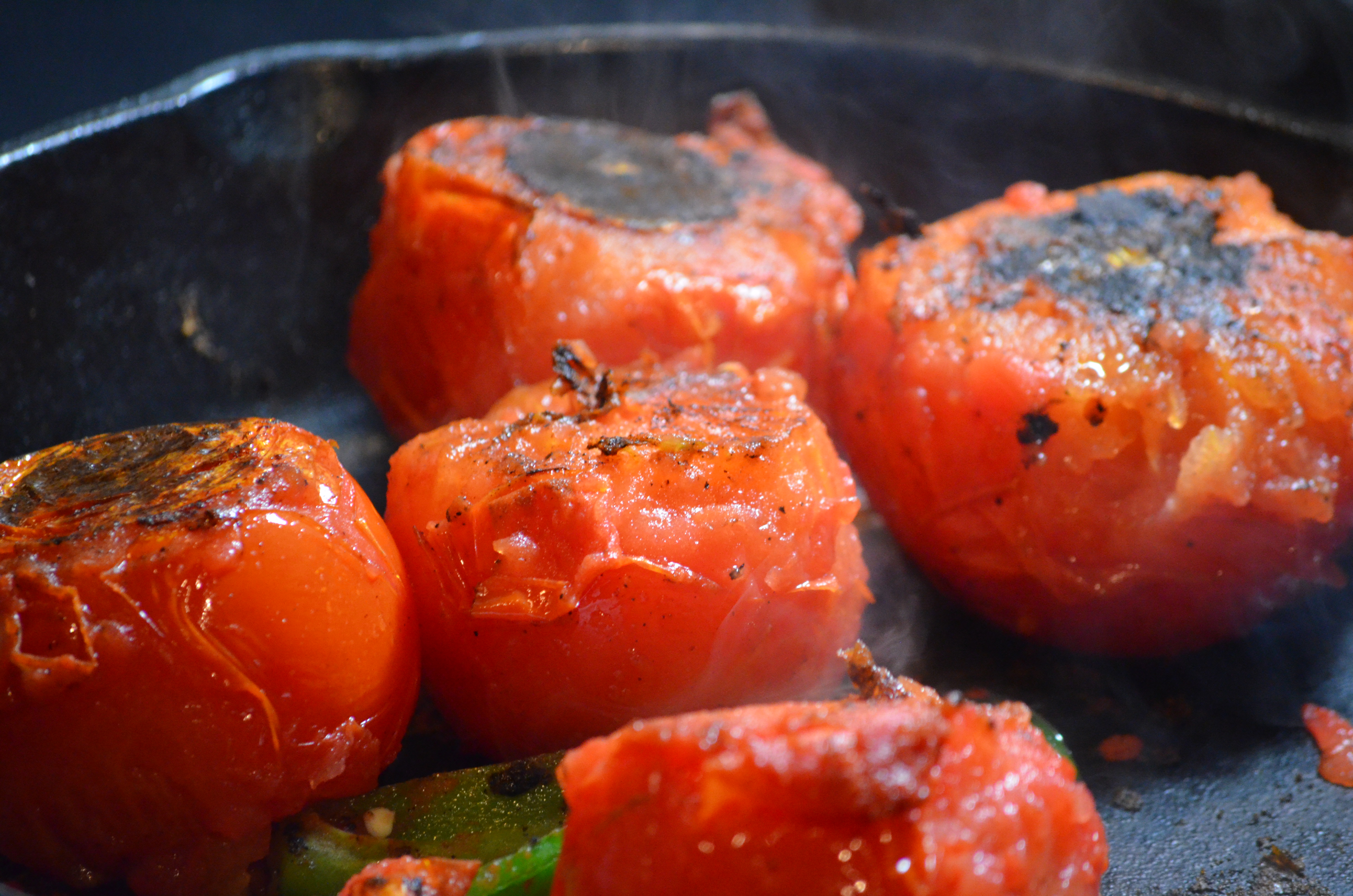 Add the jalapeno to the pan with the tomatoes and onion. After about 2 minutes, pull the onions out and leave the tomatoes and jalapeno in there for another 4-5 minutes until you just can’t take it anymore.