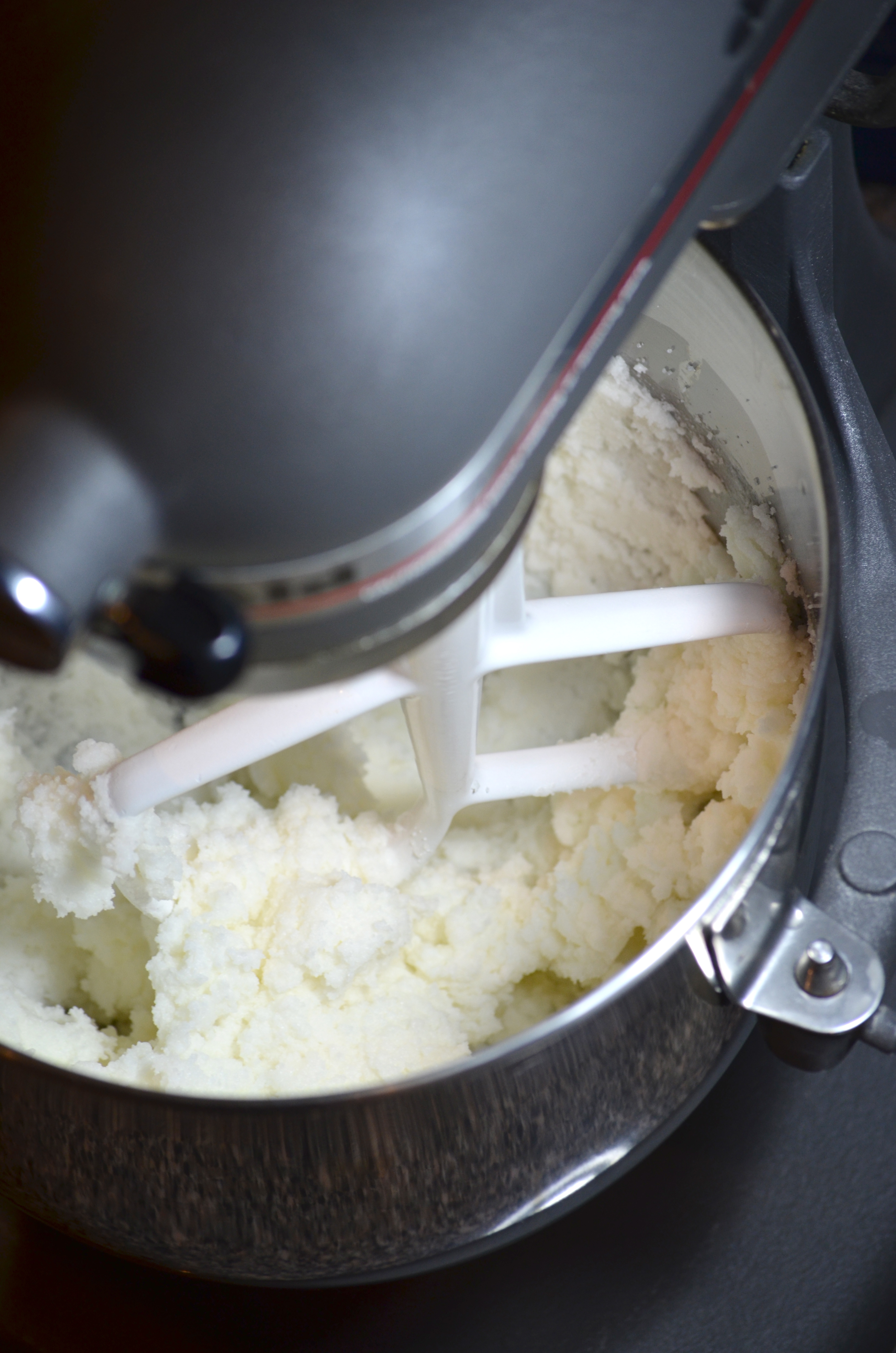 Cream the butter, cream cheese, lemon juice and vanilla on medium-high speed for 3-4 minutes. These times are useful because they help you end up with a really light and fluffy frosting. Reduce speed to medium-low and add confectioners’ sugar and salt. Beat until smooth, about 4-6 minutes.