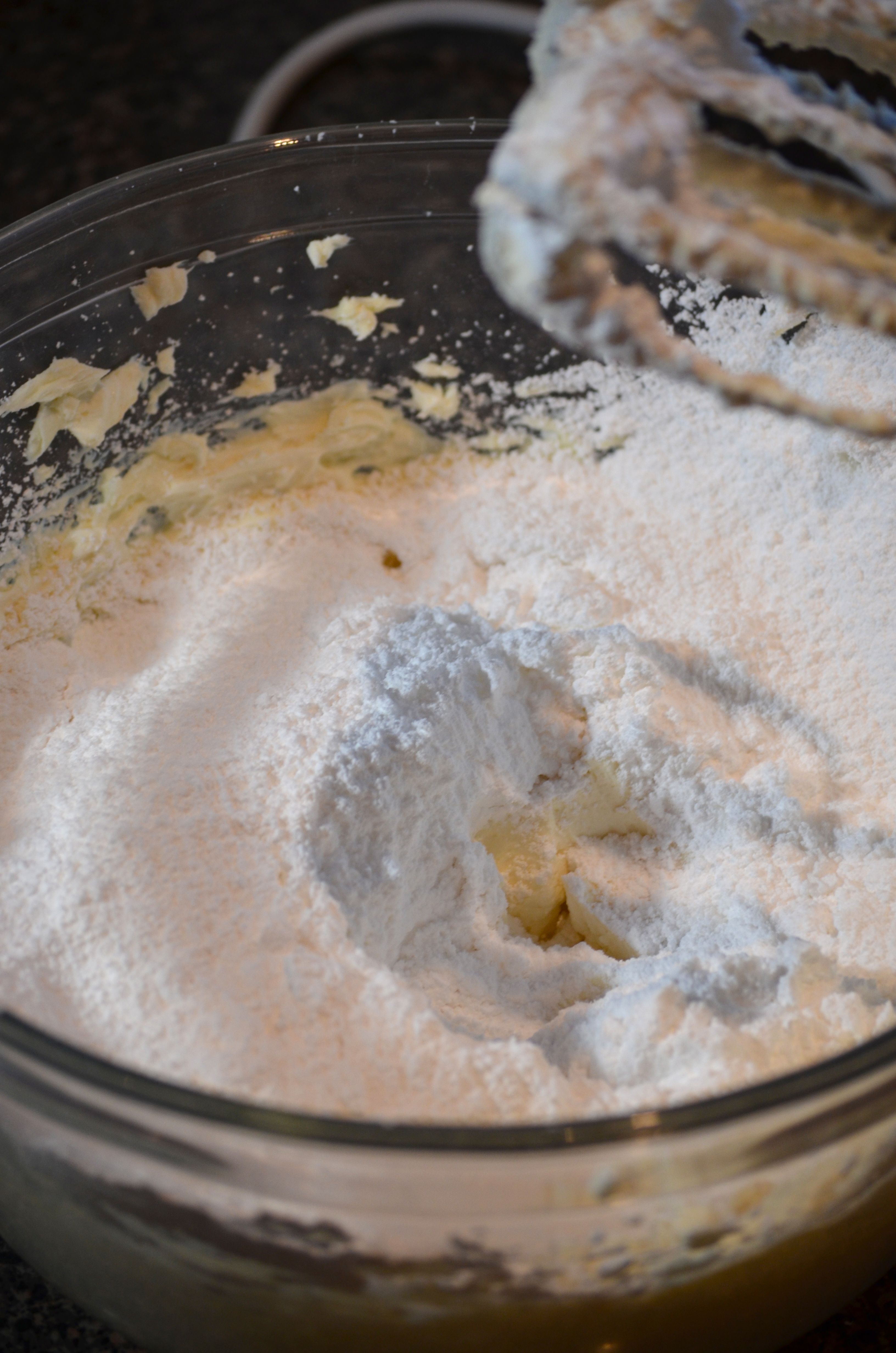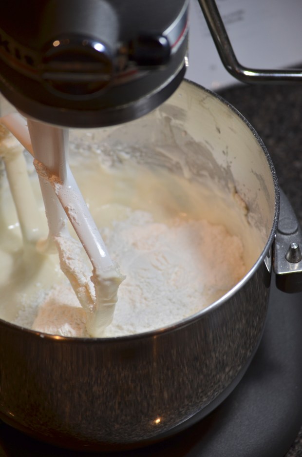 Separately, sift, measure, then sift again your cake flour along with the baking powder and salt in a small bowl. Set aside. Add the vanilla extract to the sugar and Crisco mixture and incorporate. Now you’ll add the flour mixture and the buttermilk to the sugar mixture, a little at a time alternating wet and dry ingredients, beginning and ending with dry. This should take place in about 3-4 steps and you should only mix the ingredients until they’re just incorporated.