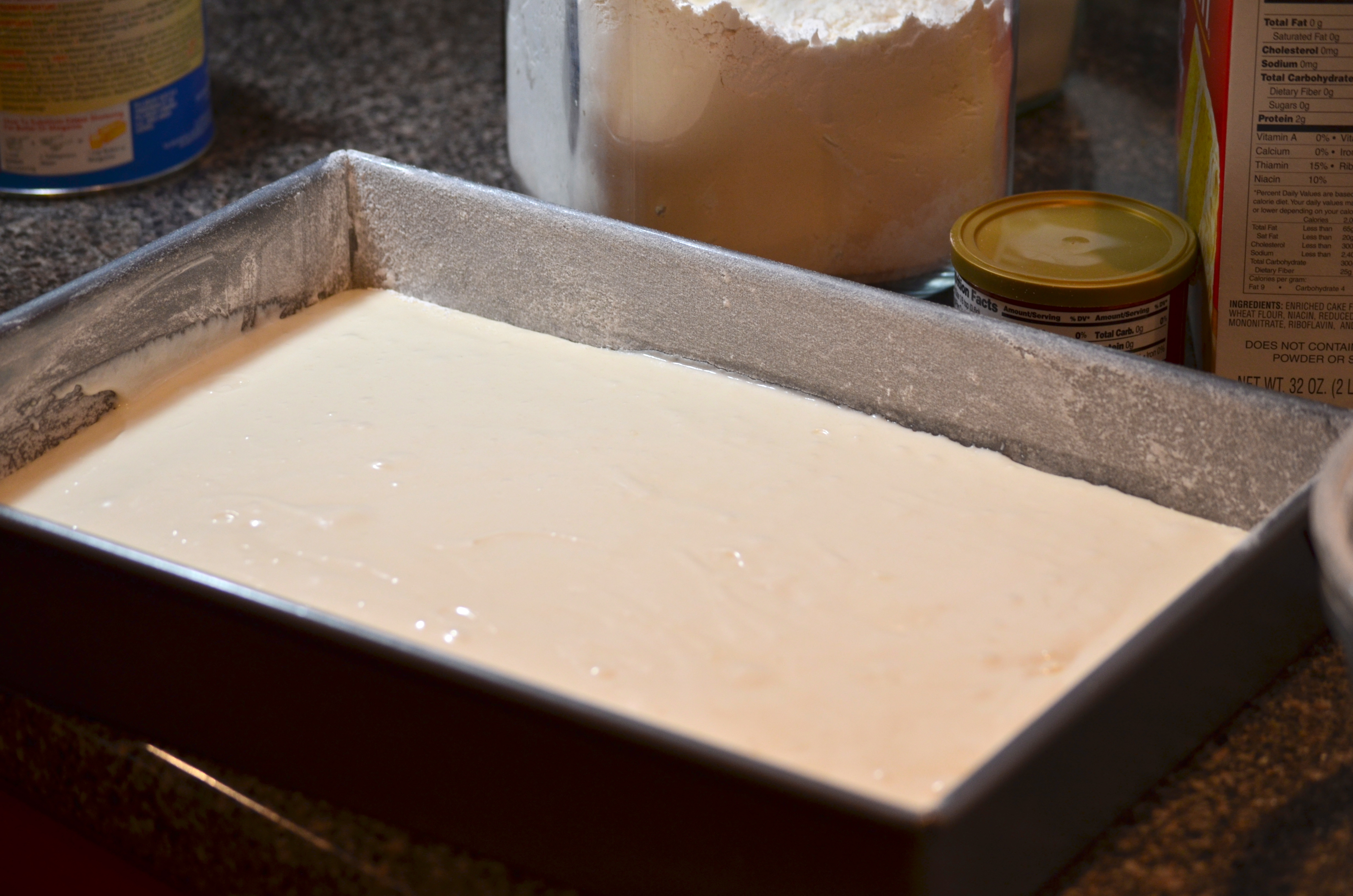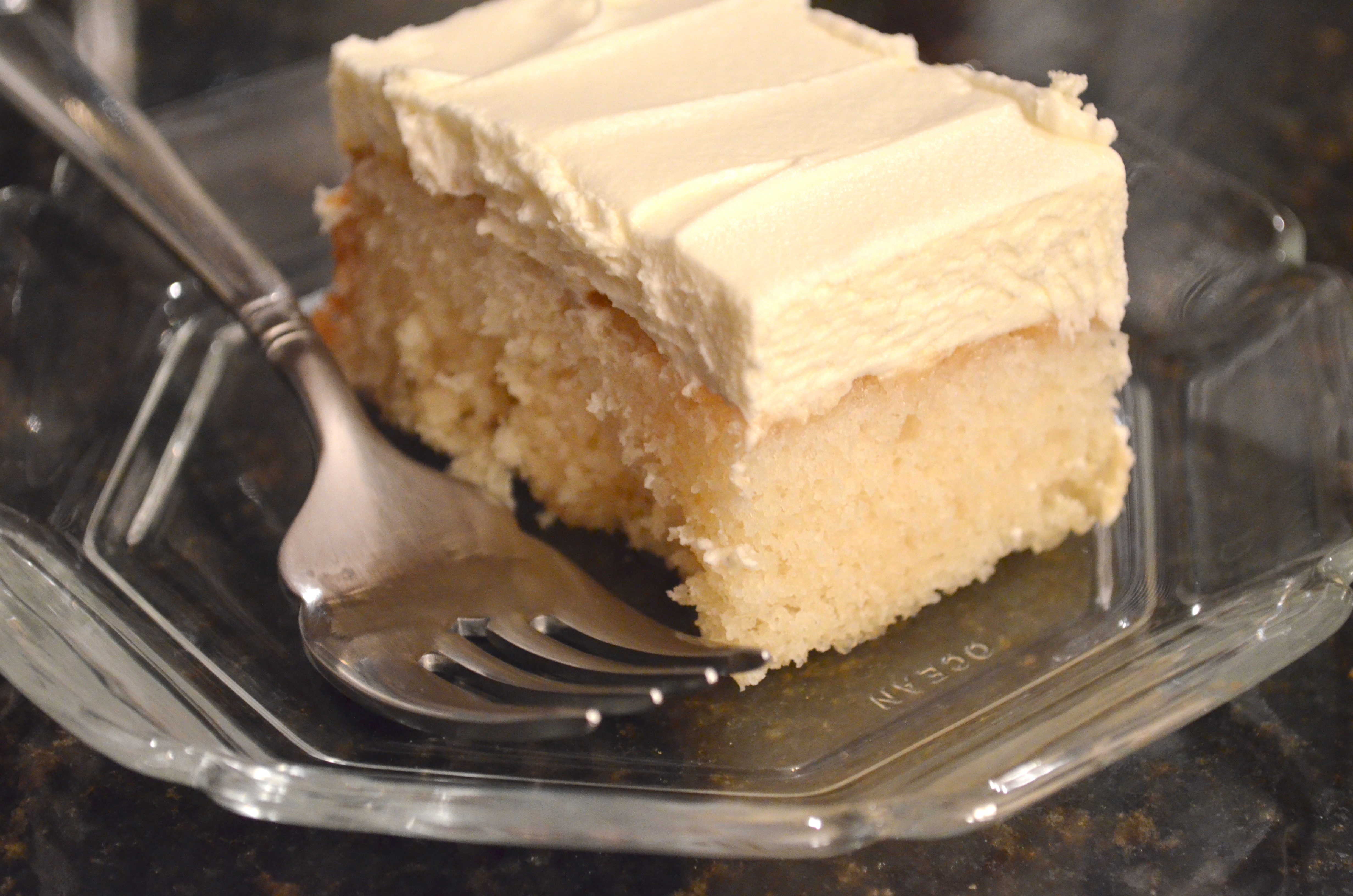 Pour this into a prepared (greased and floured) 9″x13″ aluminum or Pyrex pan. I’m sure you could make this into a layer cake but I find a sheet cake to be so much more old-school and reminiscent of being homemade. Bake for 25 – 30 minutes or until a toothpick inserted into the middle comes out clean.