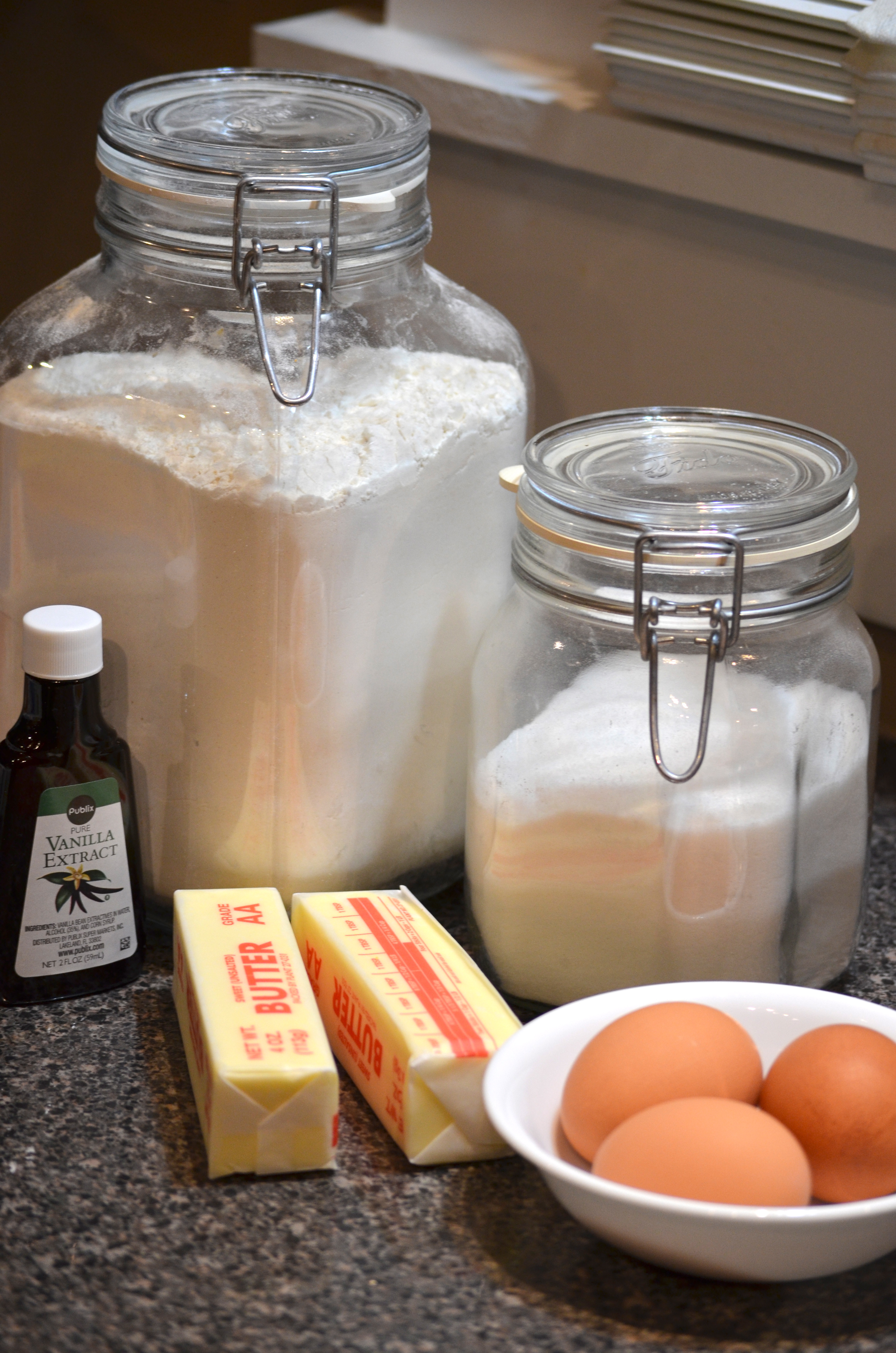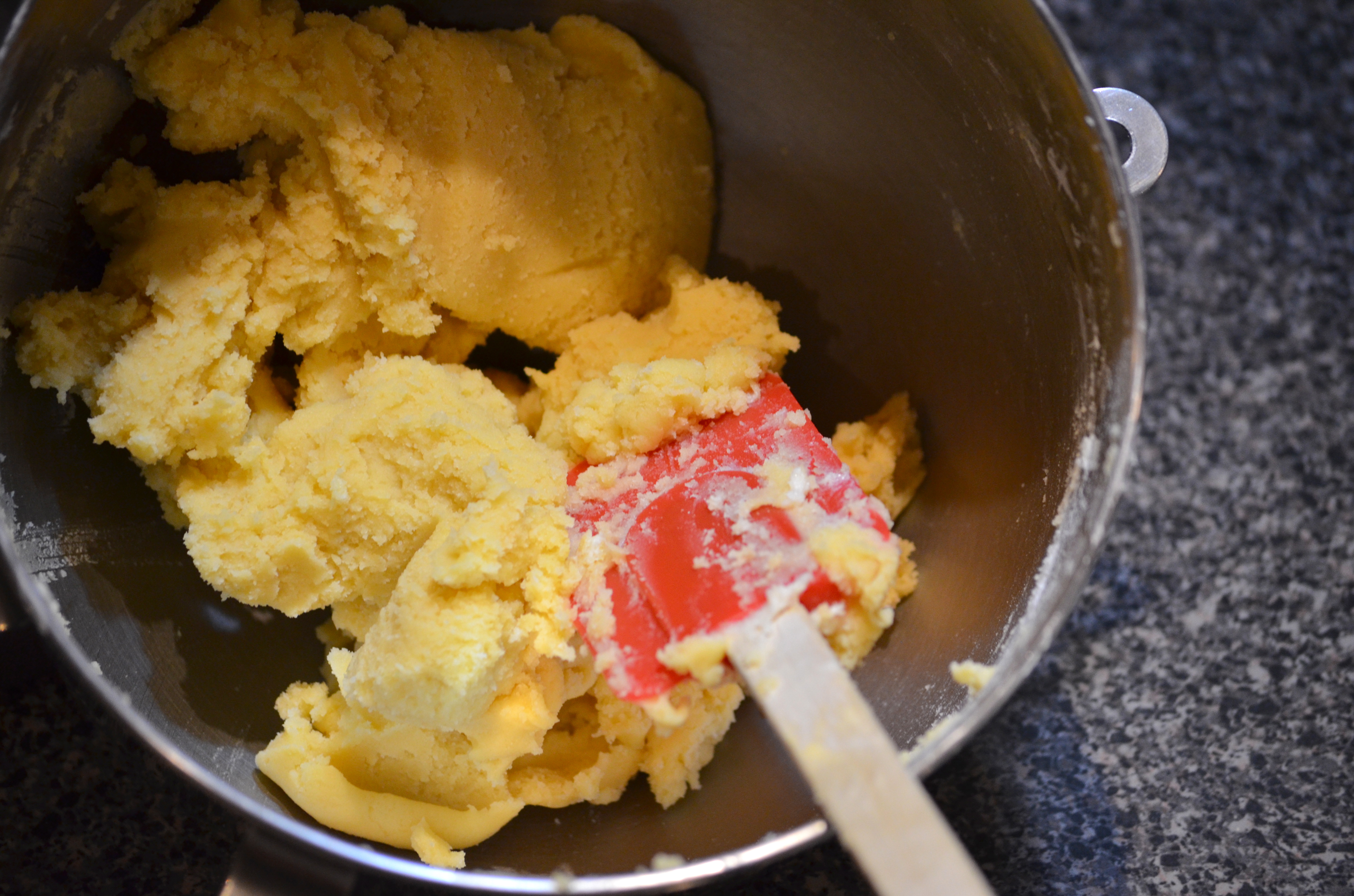 To make the dough, cream together the softened butter, sugar, egg yolks and vanilla. Add the pinch of salt and flour. Don’t overmix. You can see how I was able to manage this recipe as a child.