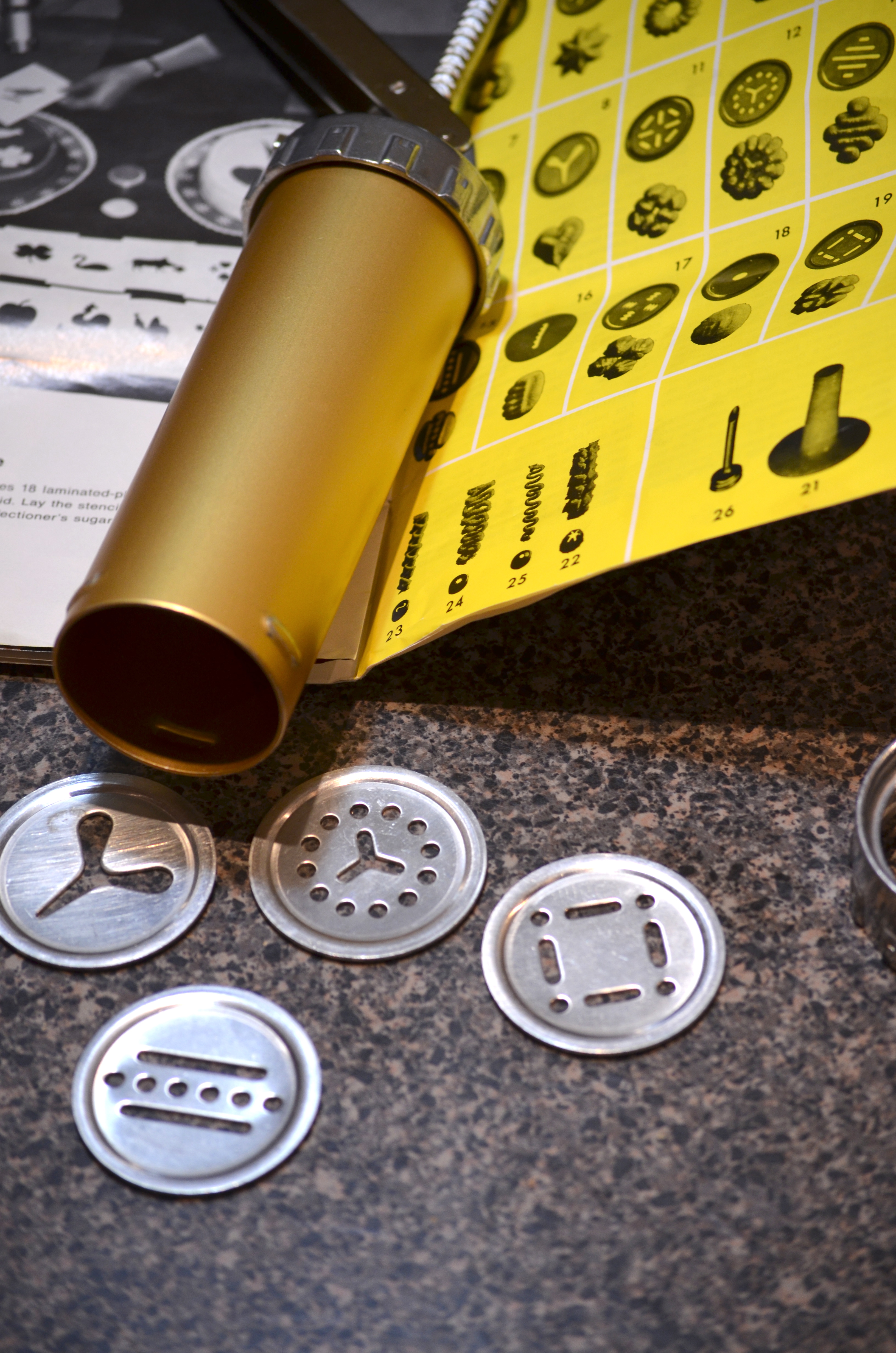 Now, let’s turn our attention to the Sawa 2000, Sweden’s number one export behind gruesome murder mystery novels. The S2K, as I like to call it, comes with a book outlining how to use the contraption, several different cookie dies and a useful guide to translating the discs into satisfying cookie shapes.