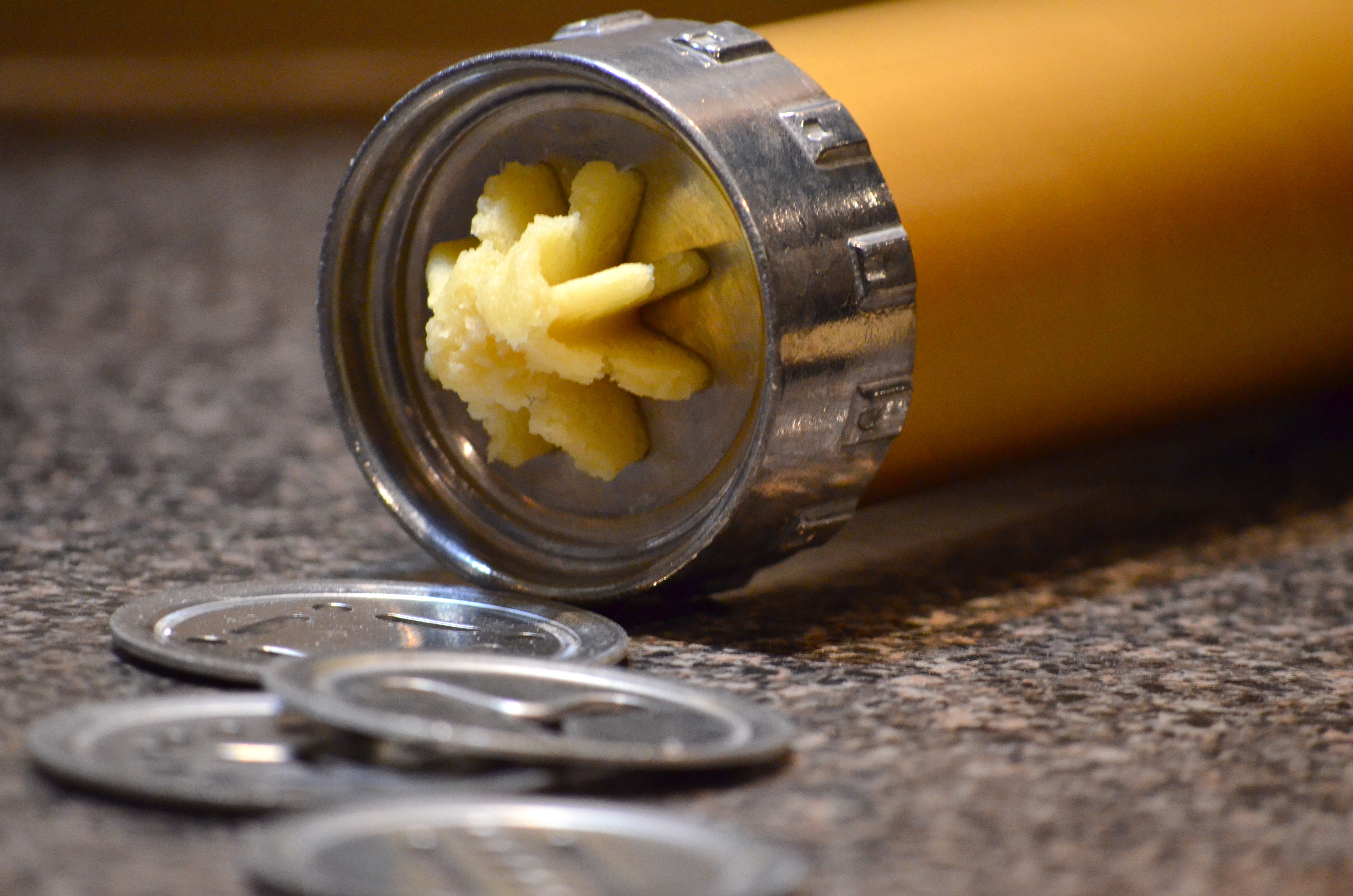 It’s time to load the press. Grab a handful of dough and start making a snake. Anyone else thinking of this?