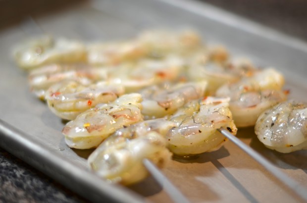 Tough, right? Once you’re ready to eat, skewer your shrimp (literally, not by degrading it or being unusually harsh).