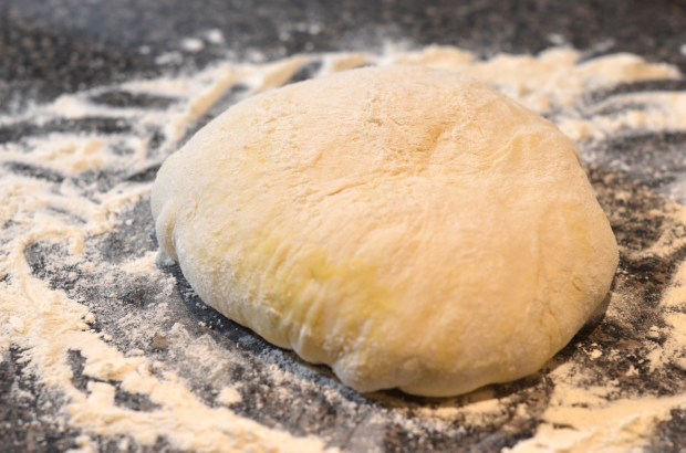 The time has come, the Walrus said, To talk of many things: of pizza peels and parmesan, of cabbages and kings. Flour your counter and get busy with the dough. Rather than use a rolling pin, try to gently stretch the dough out from the center in order to form about a 12″ round.
