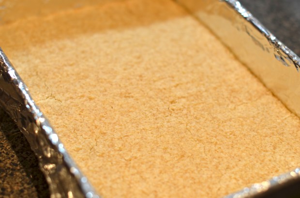 Press the tasty sand into the pan using the back of a spatula and bake for 20 minutes. Here’s the final shortbread product in case you’ve never made it before and you’re visual like I am:
