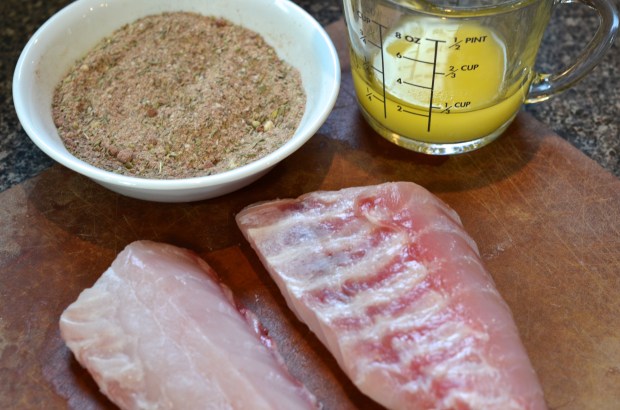 This makes enough rub for three-dinner’s worth of grouper. You’ll be able to put the rest in a jar and save until next time. Take a few minutes to clean up your fish (debone, skin if necessary) and to melt your butter. You should also grab your cast iron skillet and get it on the stove over medium high heat so it can come to temperature.