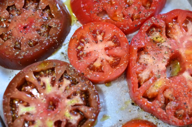 While this isn’t necessary, I decided to roast the tomatoes for about 20 minutes before putting them in the dish. I thought this might keep them from being overly watery (which they really aren’t, my husband just has a watery-food-phobia) and would add a bit of extra punch (which it did). This is completely optional and slightly ridiculous. Do it if you want. Or not.