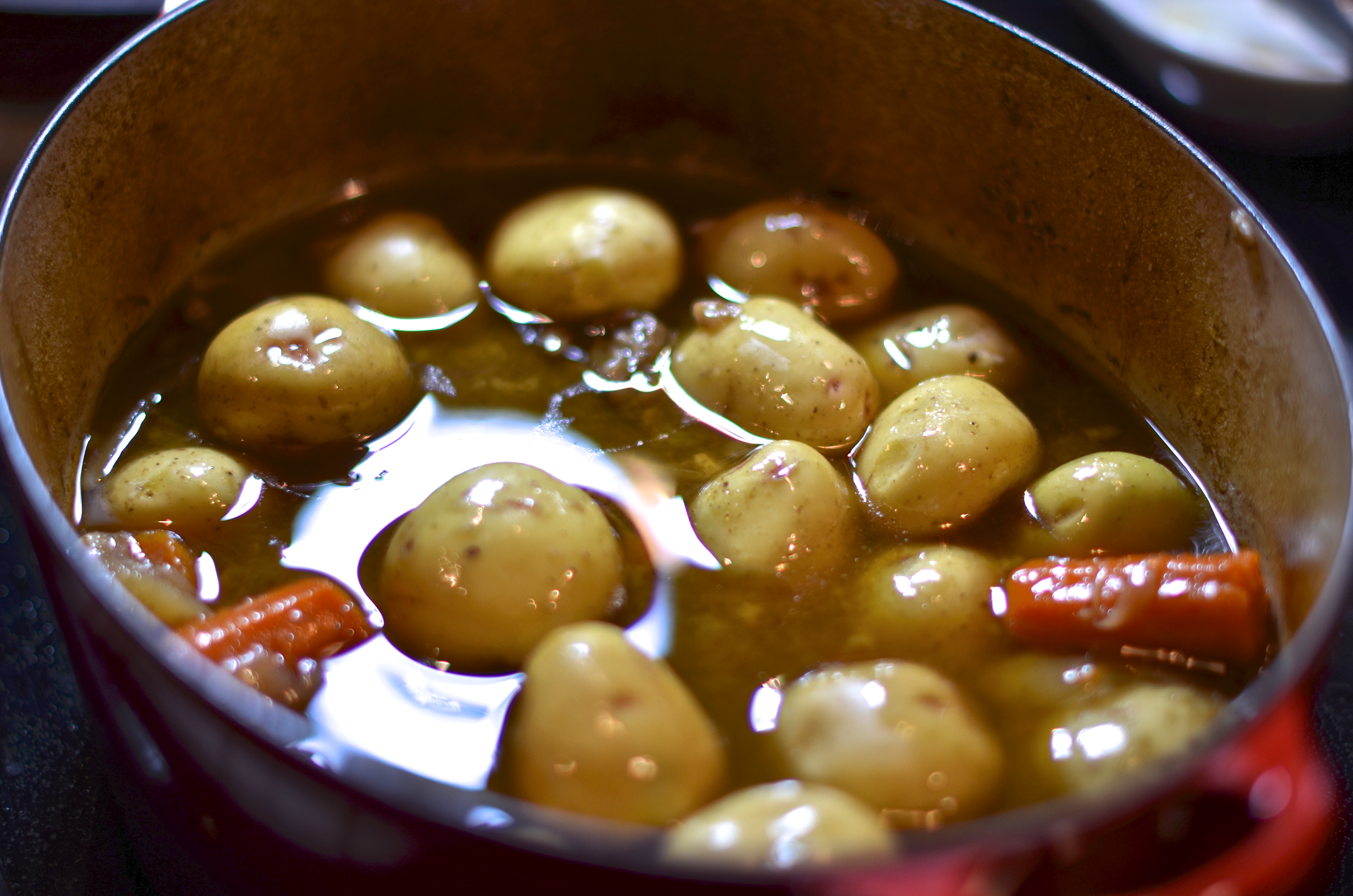 You might think that I have forgotten about the potatoes but I’ll have you know that I haven’t. Like I recommended with the vegetable soup, don’t add your potatoes until later on in the process so they don’t completely break down. When you’re about an hour away from eating, add the washed whole potatoes to the pot, cover, and cook for another hour until they’re tender.