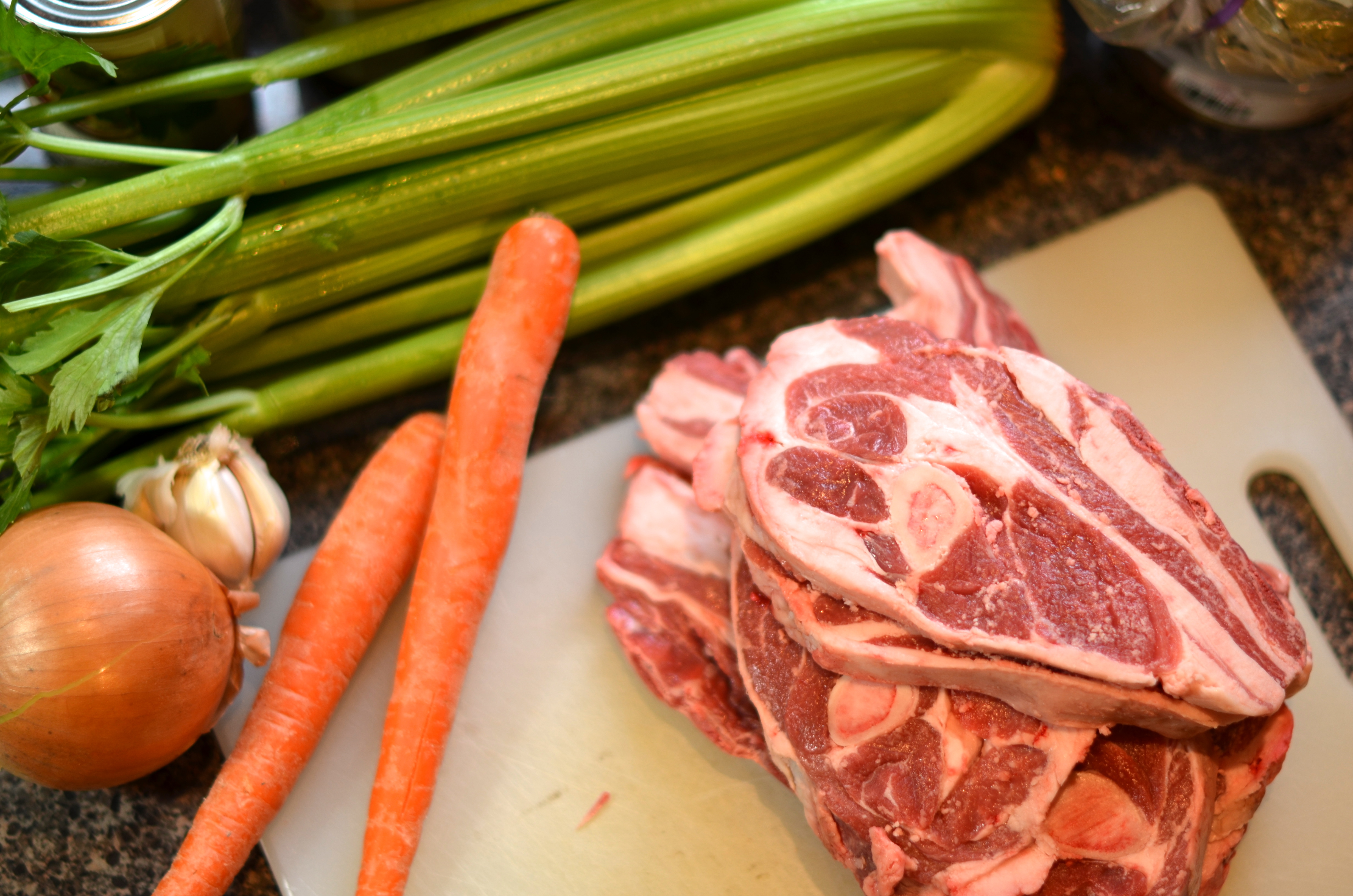 We buy our meats of all varieties at Your Dekalb Farmers Market. We buy most things there, actually. The challenge is, it’s never the same meat cut twice. There must be a contingent of free-spirited butchers who go more by feeling than anything else which can result in frustration from time to time but ultimately shouldn’t deter anyone from meat-selecting. Here I’m showing what they call “lamb shoulder steaks.” The week before these same cuts were a bit different and I actually threw the bones into the stew to let all the meat cook off them. This time they were cut in such a way that there were cross-sections of rib bones that would have presented choking hazards to even the most seasoned swallower so I kept them out. The moral of this rambling is: don’t be afraid to get creative. If you find a whole bone-in lamb shoulder, chop it up and use that. Find lamb stew meat already prepared? Go for it. This is an approximation of how it should look before you’re ready to go.