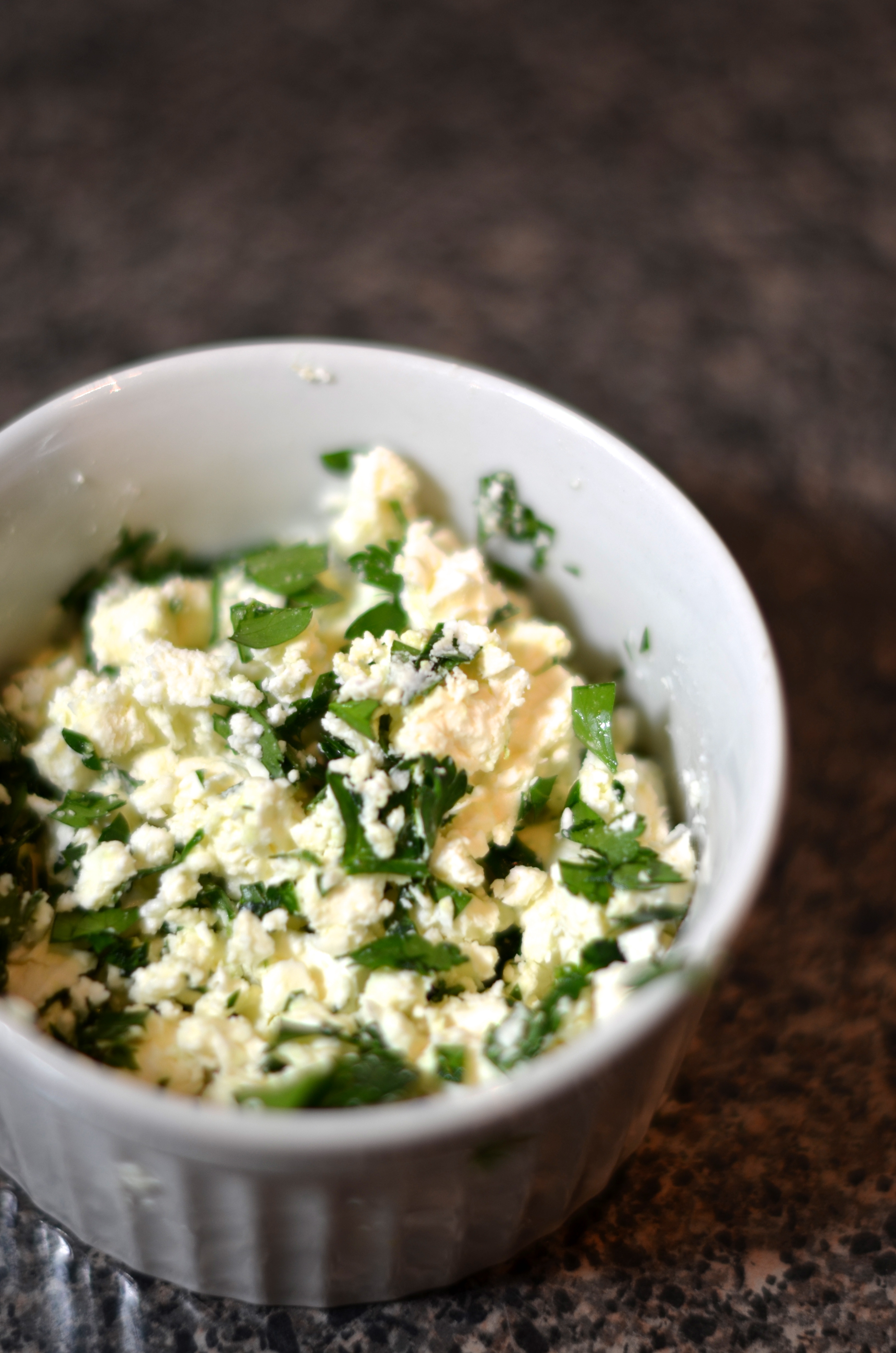 While that’s happening, crumble up some feta and add some of your minced parsley to it for a nice topping.